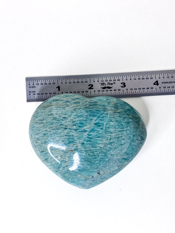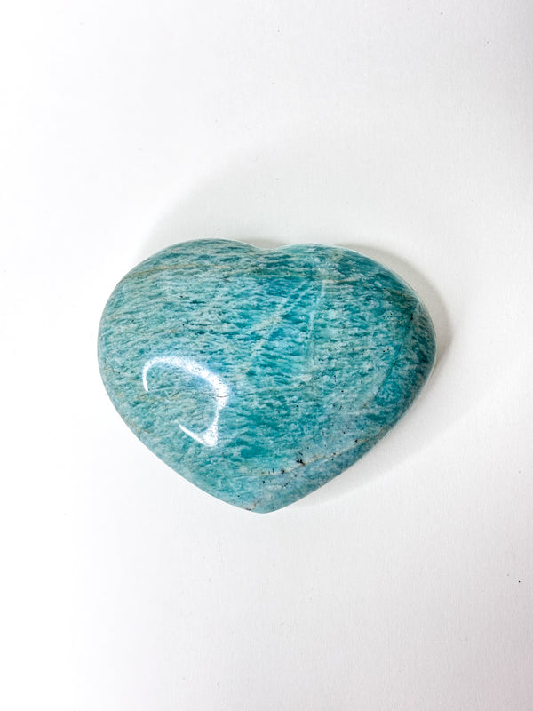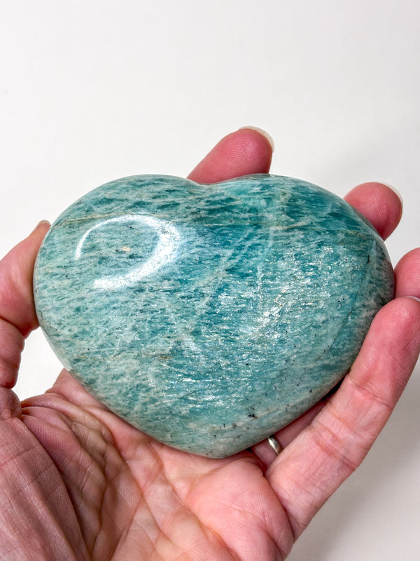 This Amazonite heart emanates waves of serenity and emotional renewal. Its crystalline frequency opens the heart to forgiveness, self-acceptance, and deeper connection with others. A bridge between the heart and throat chakras, Amazonite encourages honest, loving communication and releases patterns of people-pleasing or fear of rejection.