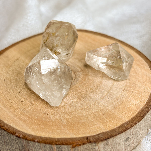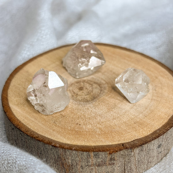Pakimer Diamonds—Herkimer-style quartz from the mountains of Pakistan—carry the same brilliant, high-frequency energy as traditional Herkimer Diamonds with a more budget-friendly price point. Each piece is naturally double-terminated and filled with crystalline light, making them powerful allies for meditation, intention-setting, and energy cleansing.